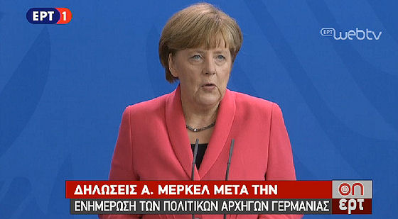 Σε λόγους κατ΄ουσίαν άμυνας για την προστασία του Ευρώ από την μονομερή και αιφνιδιαστική κίνηση της Ελλάδας, αποδίδει η Μέρκελ τη στάση των Εταίρων, στη συνέντευξή της με τον Αντικαγκελάριο και Υπουργό Οικονομίας της Γερμανίας Ζίγκμπαρ Γκάμπριελ: